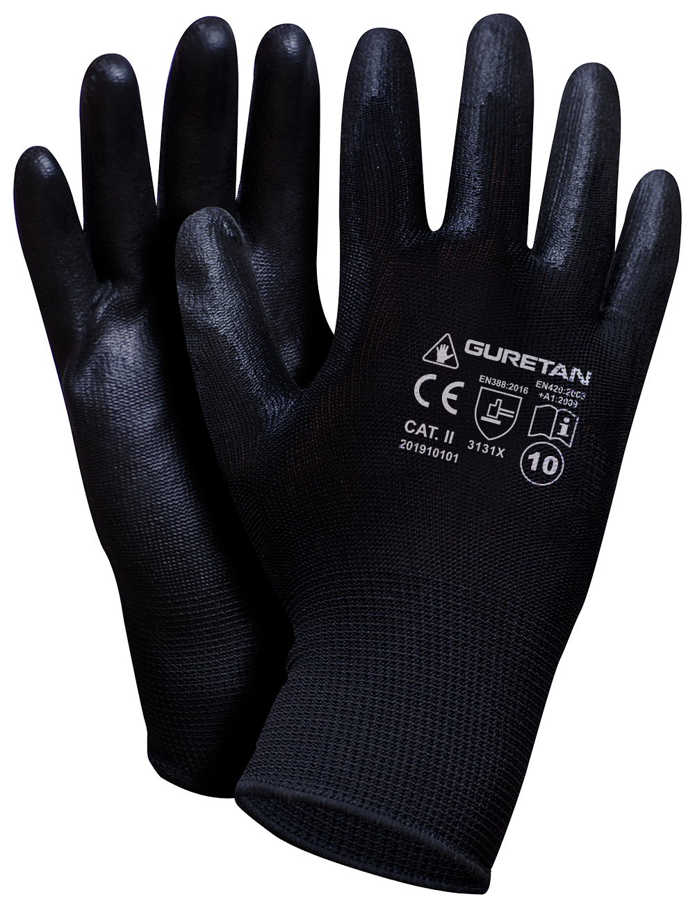 Worklink Guretan B on kvaliteetsed töökindad, mis on valmistatud elastsest, hallist polüestrist (13‑silmuseline, 100% polüester). Need kindad on kaetud musta värvi polüuretaaniga (PU) peopesas, pakkudes suurepärast haaret ja tundlikkust. Tänu oma elastsusele sobivad need kindad hästi käe kuju järgi, tagades mugavuse ja liikumisvabaduse.